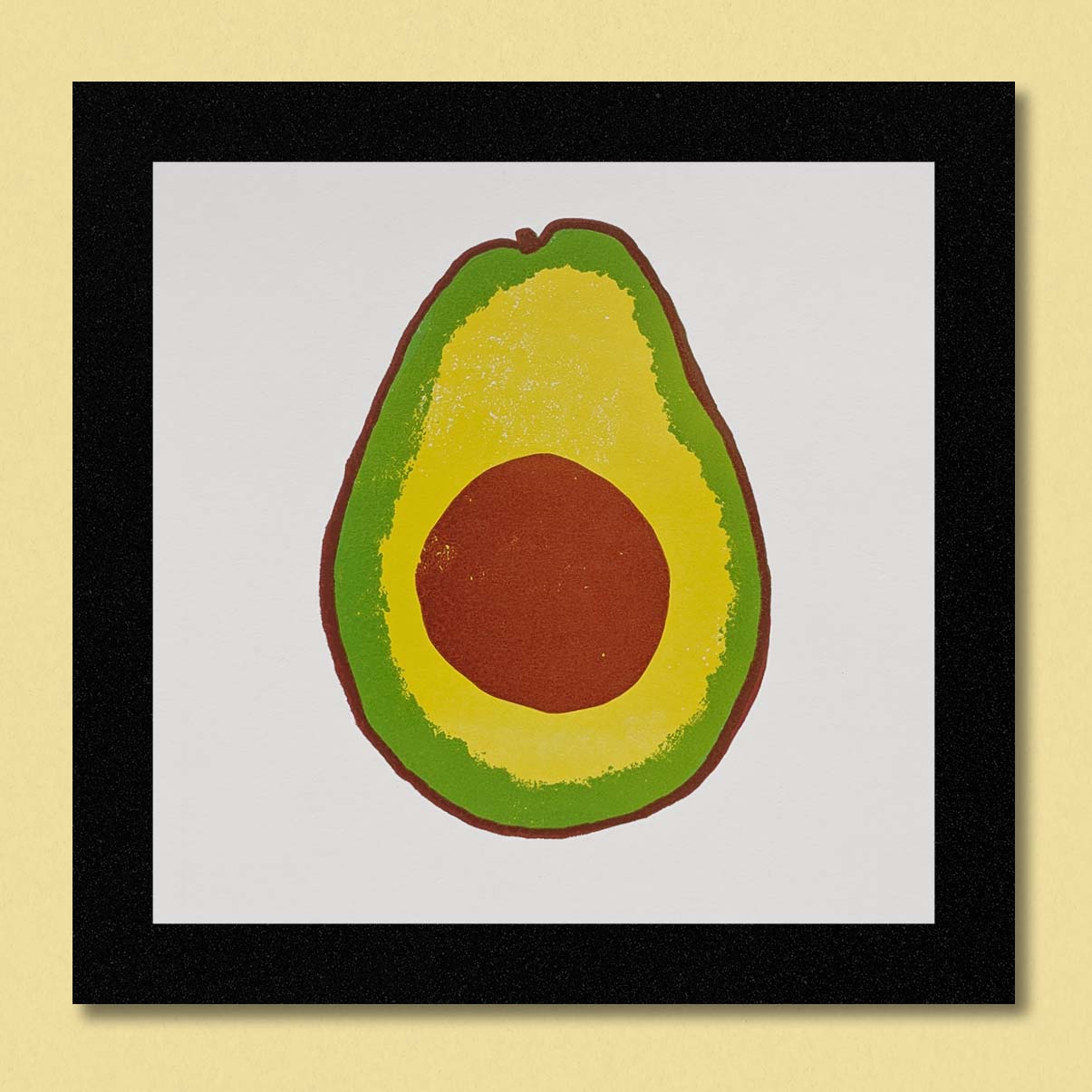 Letterpressed print of the fragrant avocado, featuring art by Chiara Armellini, for ‘Fruit Salad’