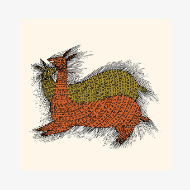 Deer rendered in Gond style of tribal art silk-screen printed on handmade paper.