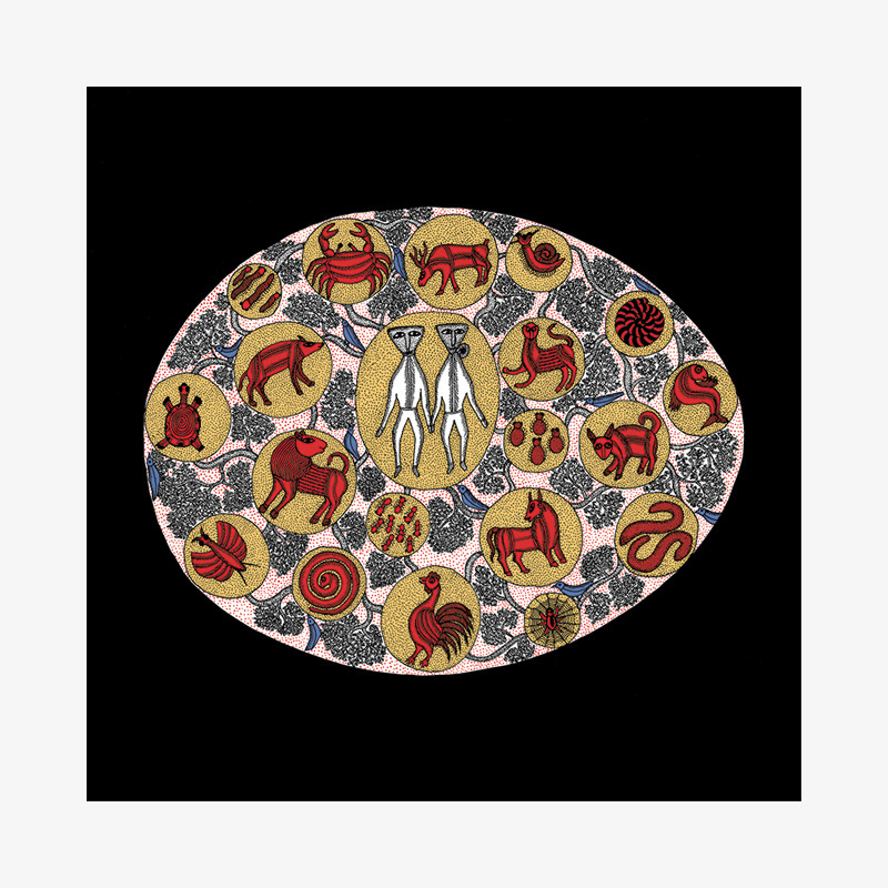 Rendered in the intricate Gond tribal art style from central India, these beautiful handmade cards are silkscreen-printed on handmade paper.